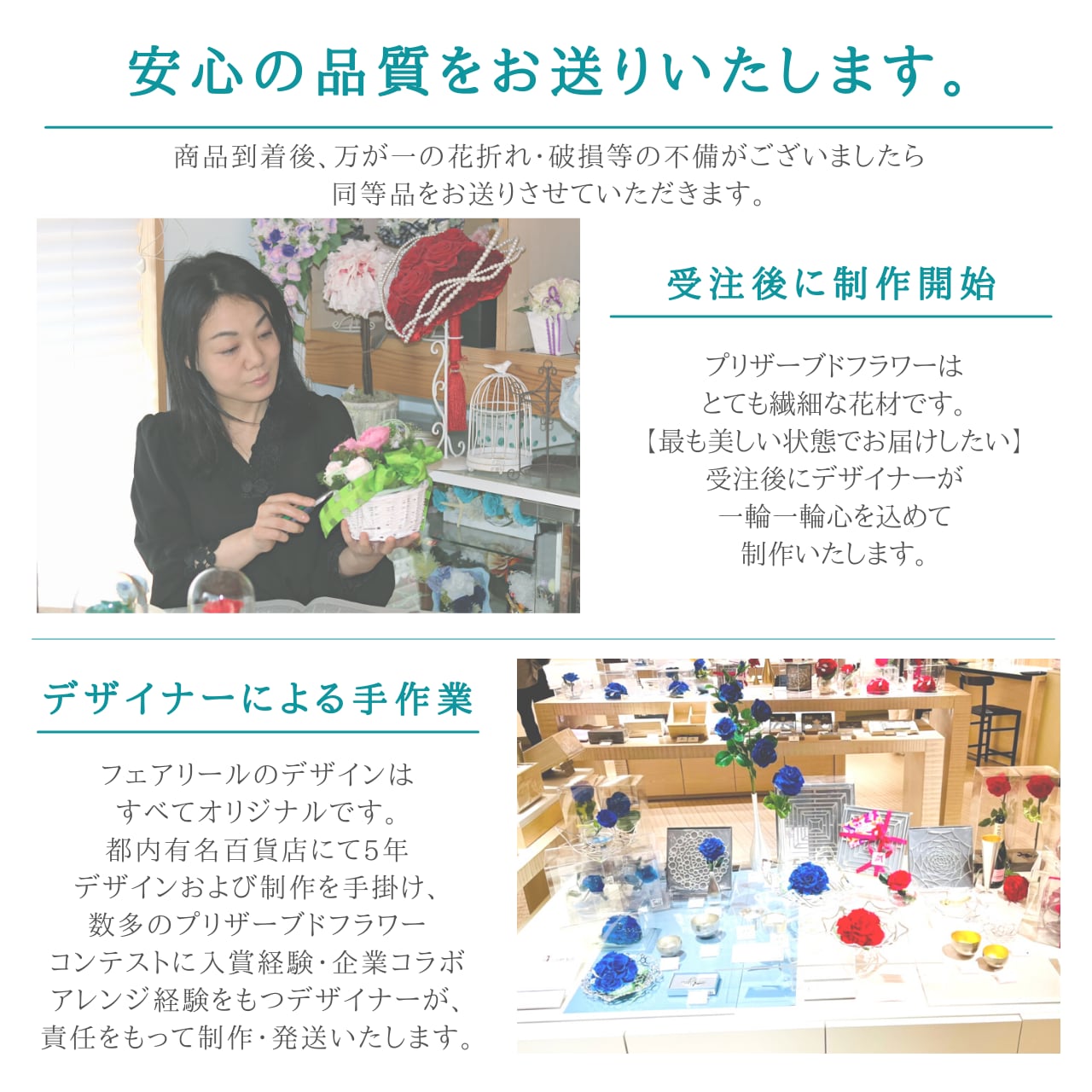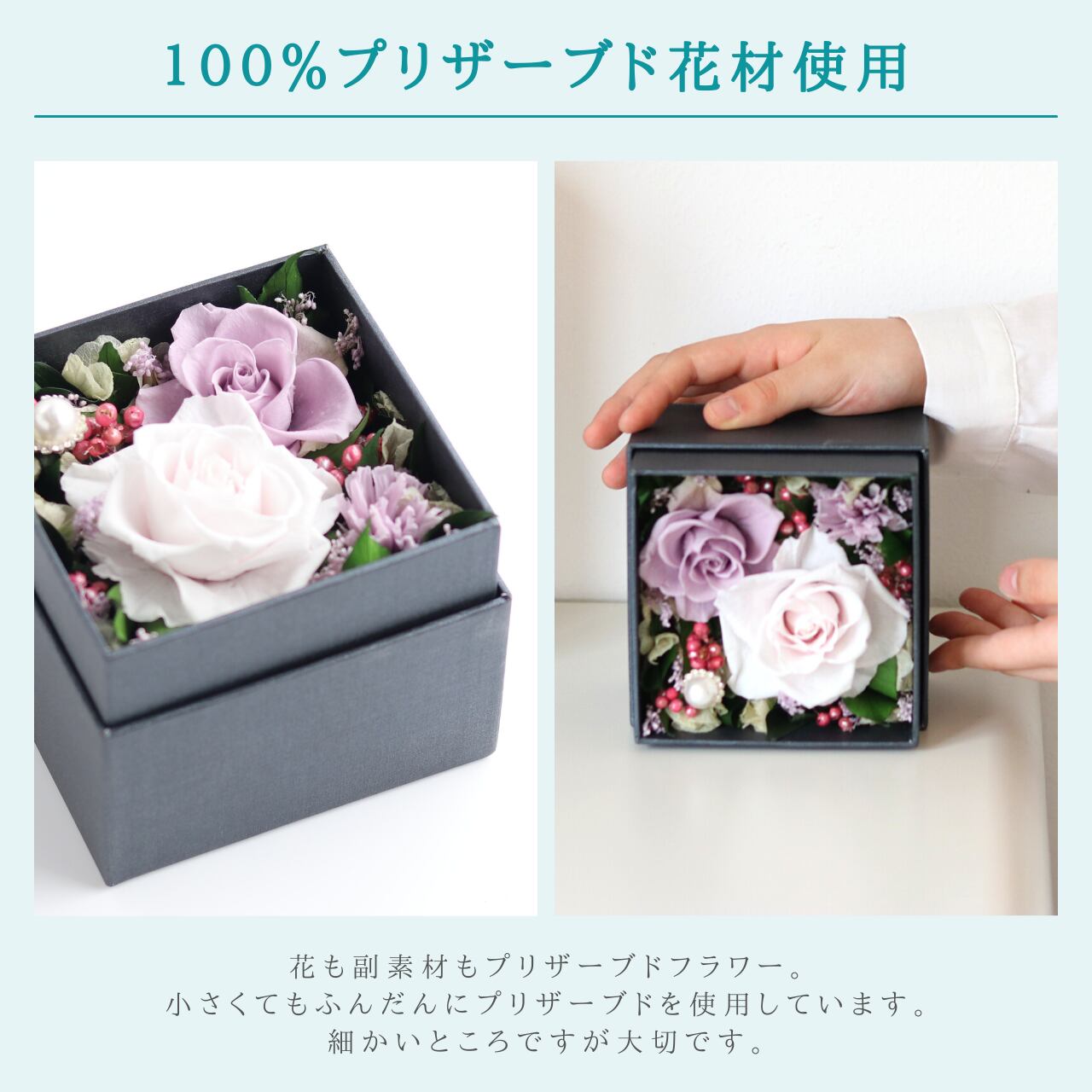 ※プリザーブドフラワーは特性上湿気により色が落ちる場合がございます。