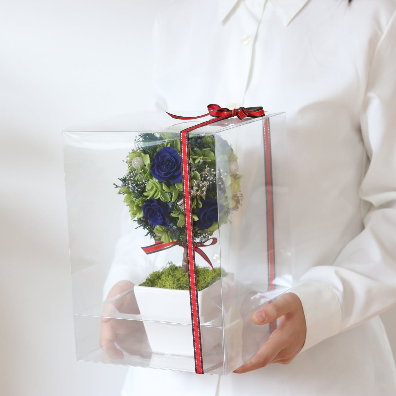 球体にまとめられた彩り豊かなトピアリーにお好きなオーナメントを!【ギフトラッピング・メッセージカード付き】プリザーブドフラワー 上質 特別 アレンジメント 専門店 トピアリー 青い薔薇 グリーン バレンタイン チョコ以外 誕生日 母の日 父の日 敬老の日 新築祝い オーナメント 上質 遅れてごめんね【グローブ GLOBE ブルー】